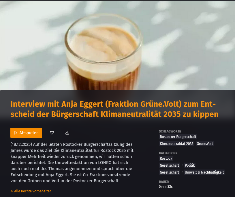 Am 18.12.2025 durfte ich für Lohro mit Aldo Segler ein Interview führen für die Sendung „Umweltkonzentrat“, die am 24.12.2025 18 Uhr ausgestrahlt wurde. Da dann sicherlich viele von Euch andere festliche Dinge getan haben, hier ein Link zu der Sendung zum Nachhören: https://media.lohro.de/recordings/7935